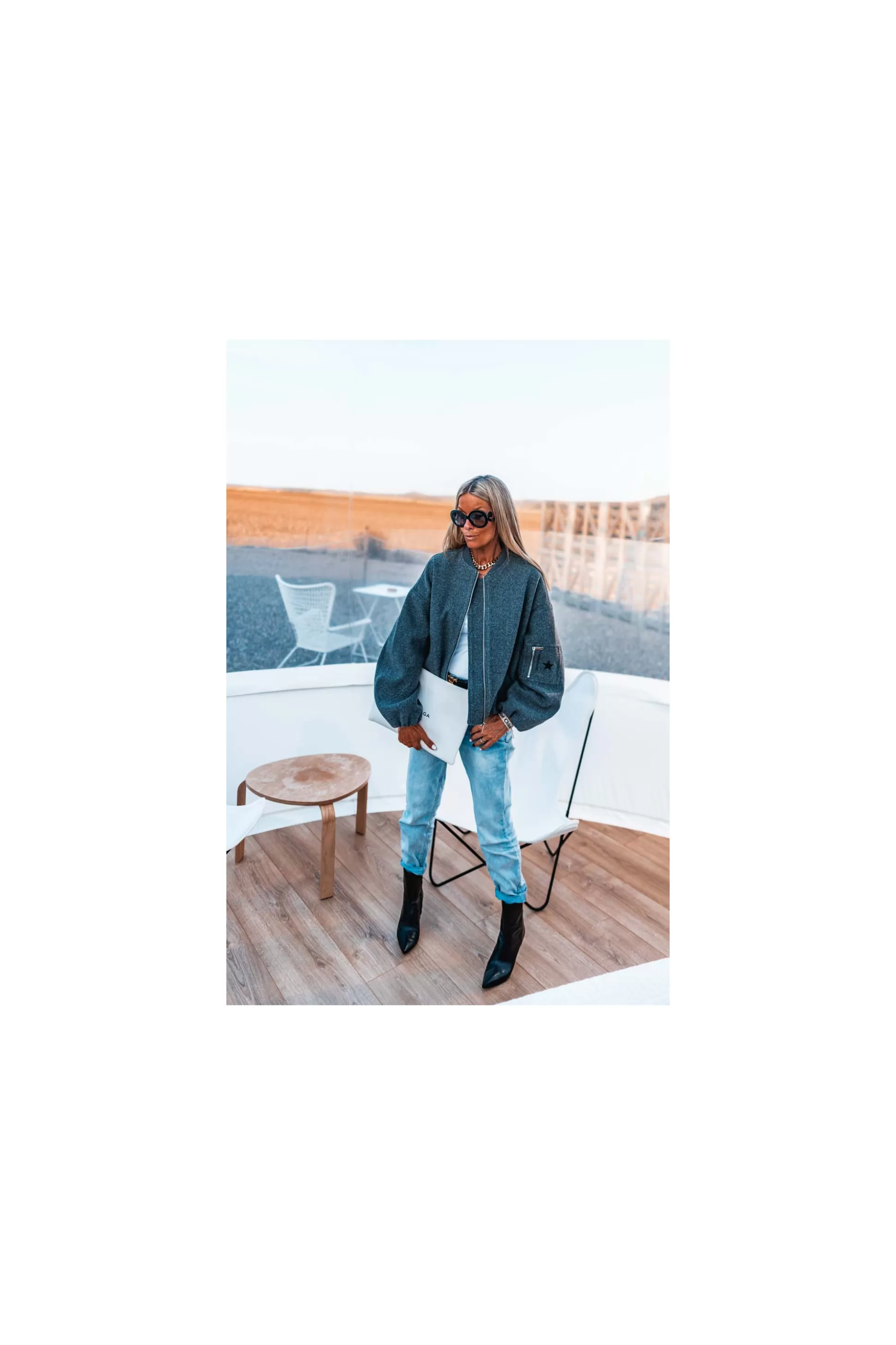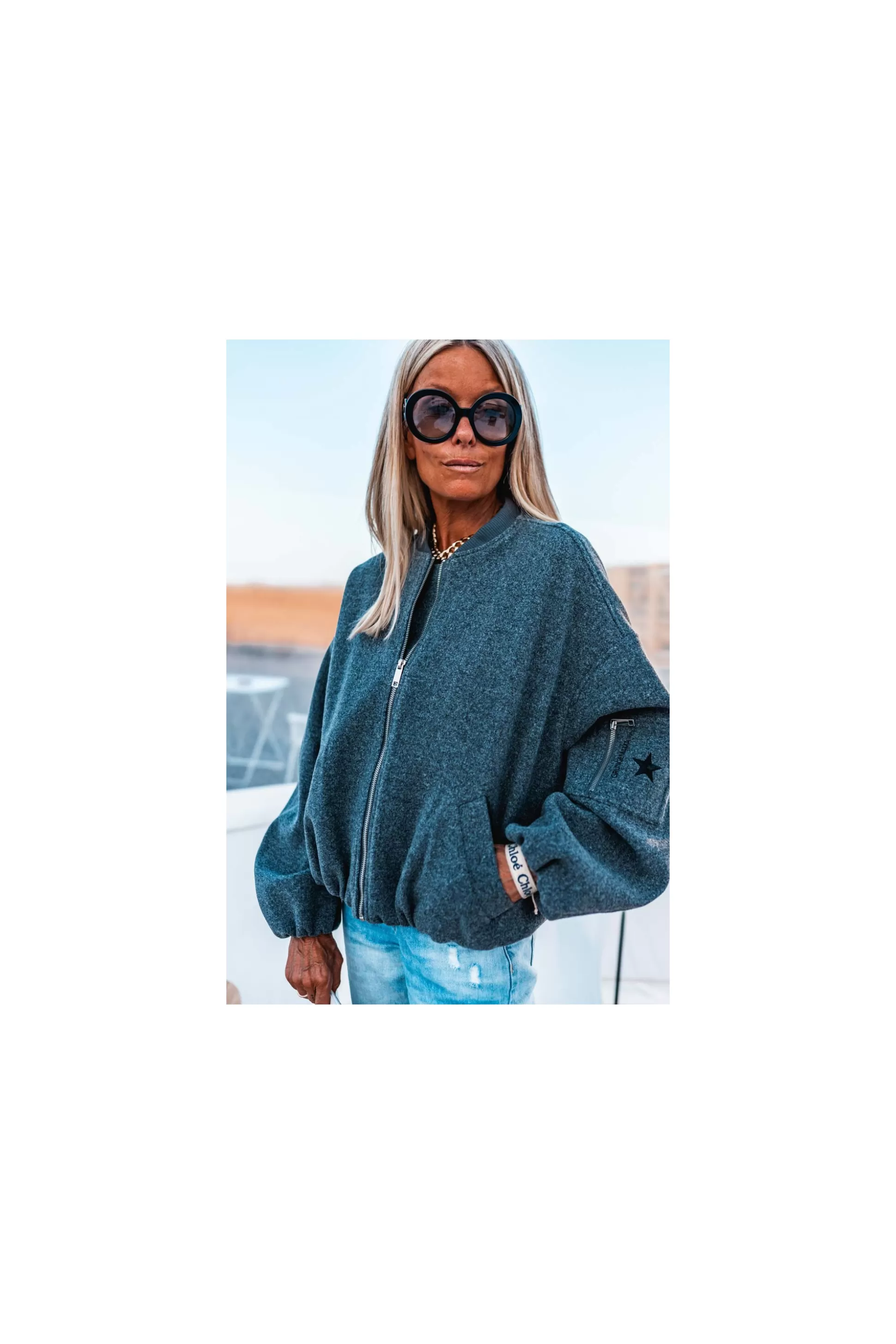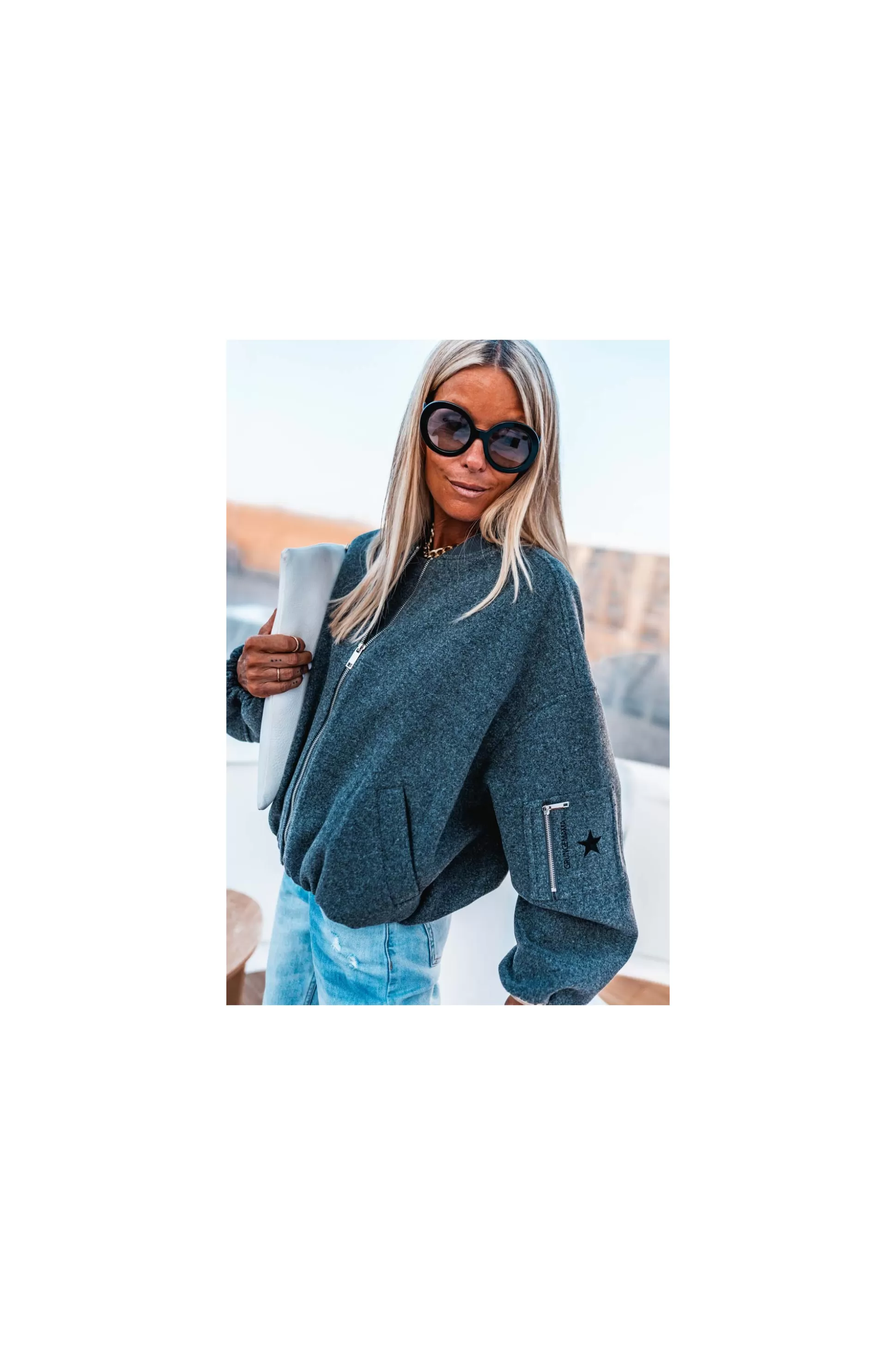 Piqué au vestiaire masculin, le blouson Deva Grungemama revisite les codes du bomber. Grand zip métallisé contrastant pour un look marqué. Il se porte amplement au quotidien sur un jeans ou pantalon city. On fini le look avec les boots Loren talons aiguilles.